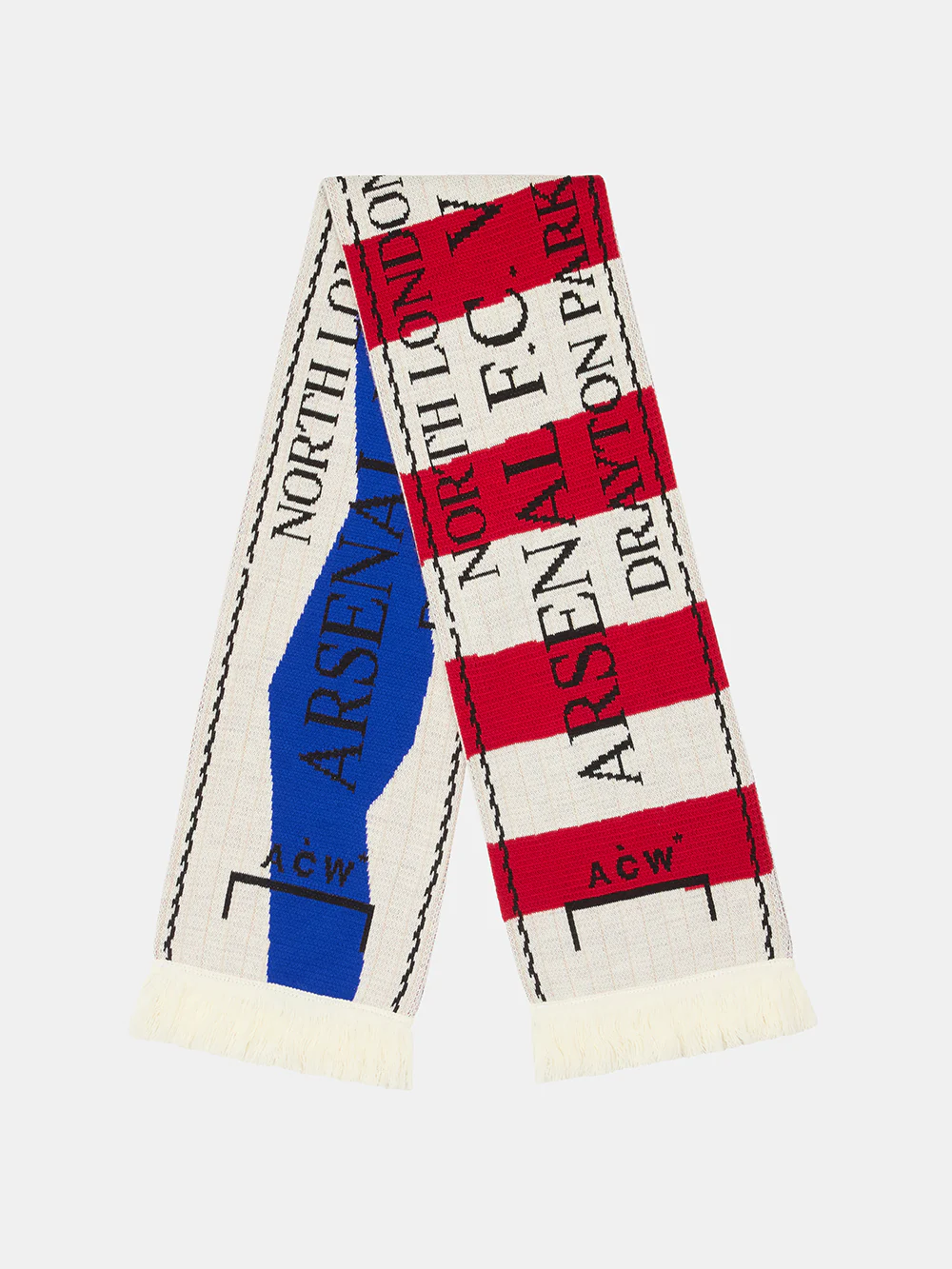 If you’re buying new, there are plenty of great designs. I’m obsessed with retro styles and anything from the women’s side like the Arsenal x A-COLD-WALL* Derby Red Scarf or the Spurs Retro Navy and Yellow Crest Scarf.
